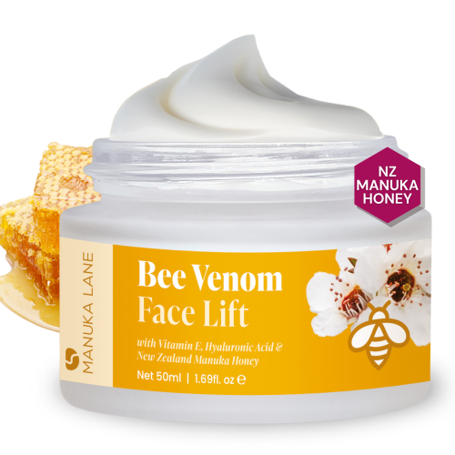 Ingredients: Aqua, Coco-Caprylate/Caprate, Glyceryl Stearate, Glycerin, Butyrospermum Parkii (Shea Butter), Simmondsia Chinensis (Jojoba) Seed Oil, Vitis Vinifera (Grape) Seed Oil, Cetearyl Glucoside, Cetearyl Alcohol, Manuka Honey, Sodium Stearoyl Glutamate, Phenoxyethanol, Tocopheryl Acetate, Ethylhexylglycerin, Bee Venom, Sodium Hyaluronate, Parfum.